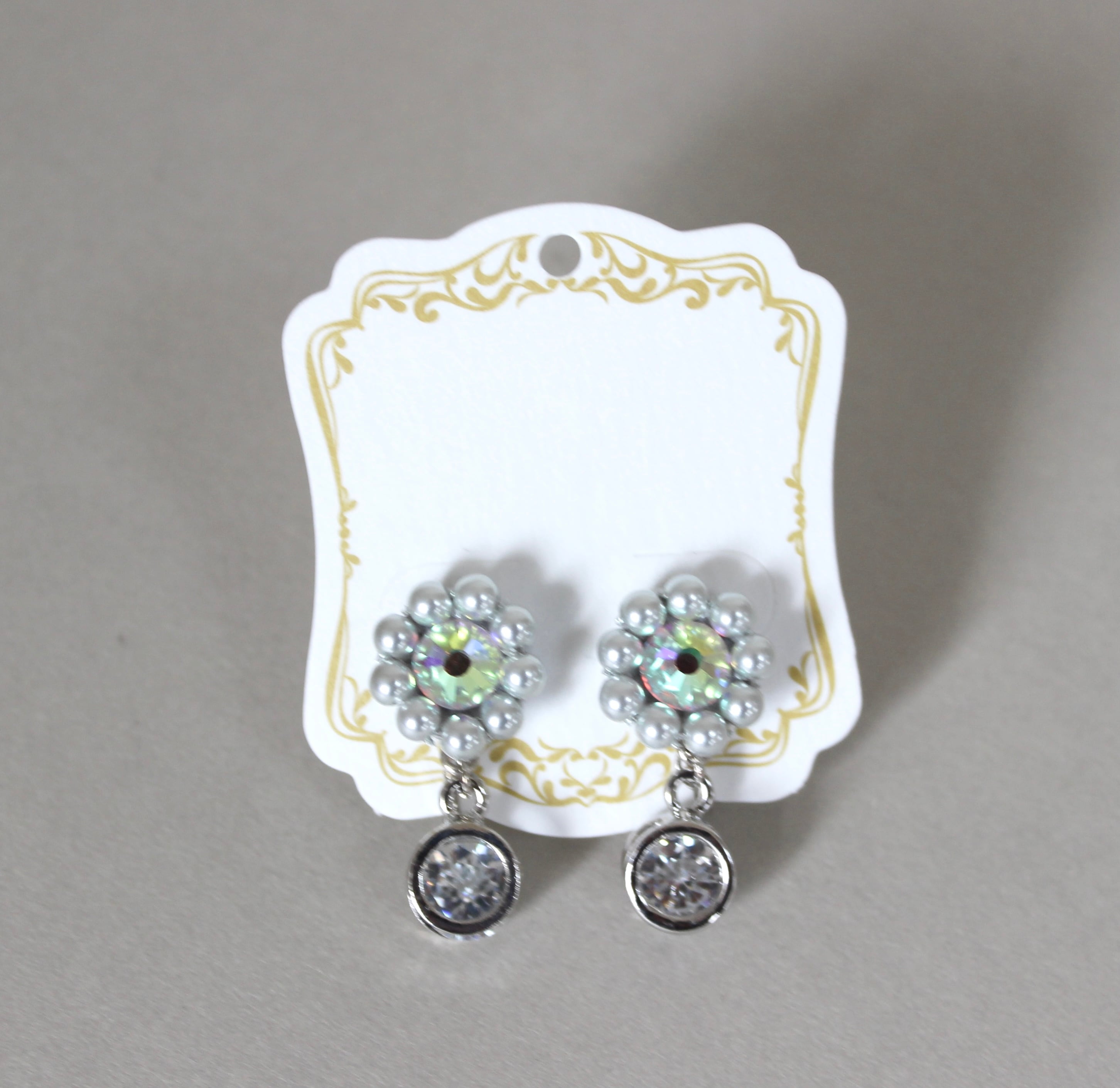 小粒のオーロラストーンのまわりにシルバーパールを縫い付けたイヤリング、ピアス。